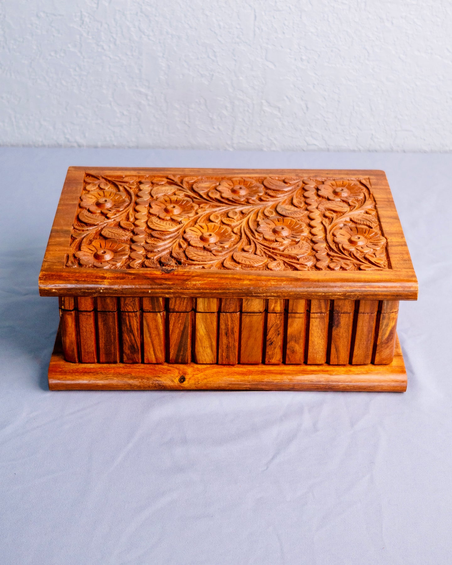 Every jewelry box is meticulously hand-carved, no lasers or CNC machines. Ever.