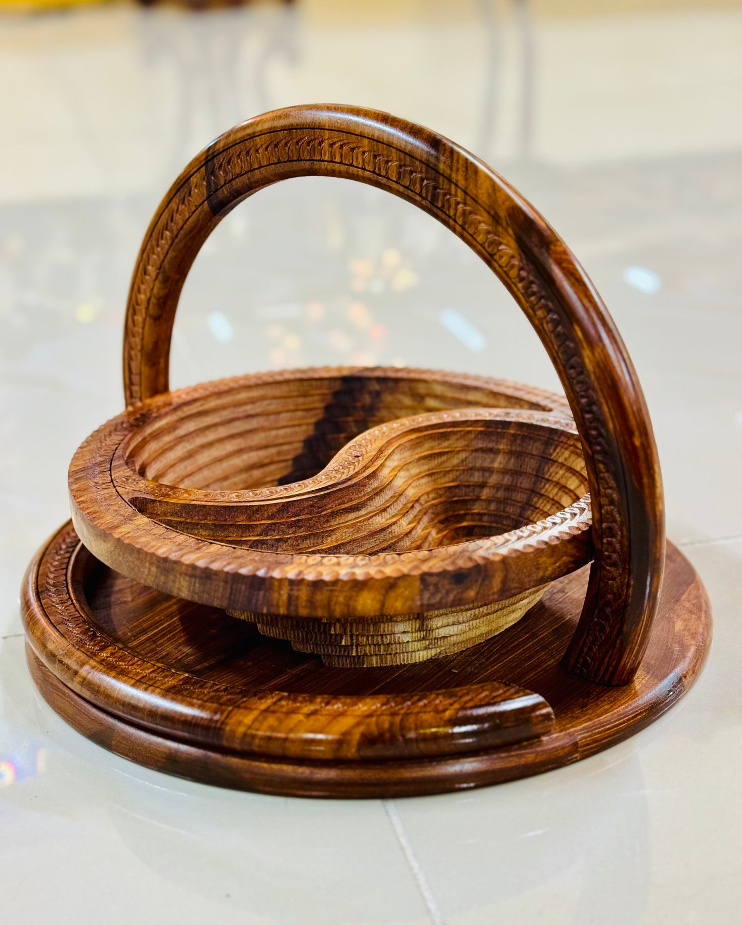 Handmade 12”, wooden, collapsible 2 paisley basket with handle.