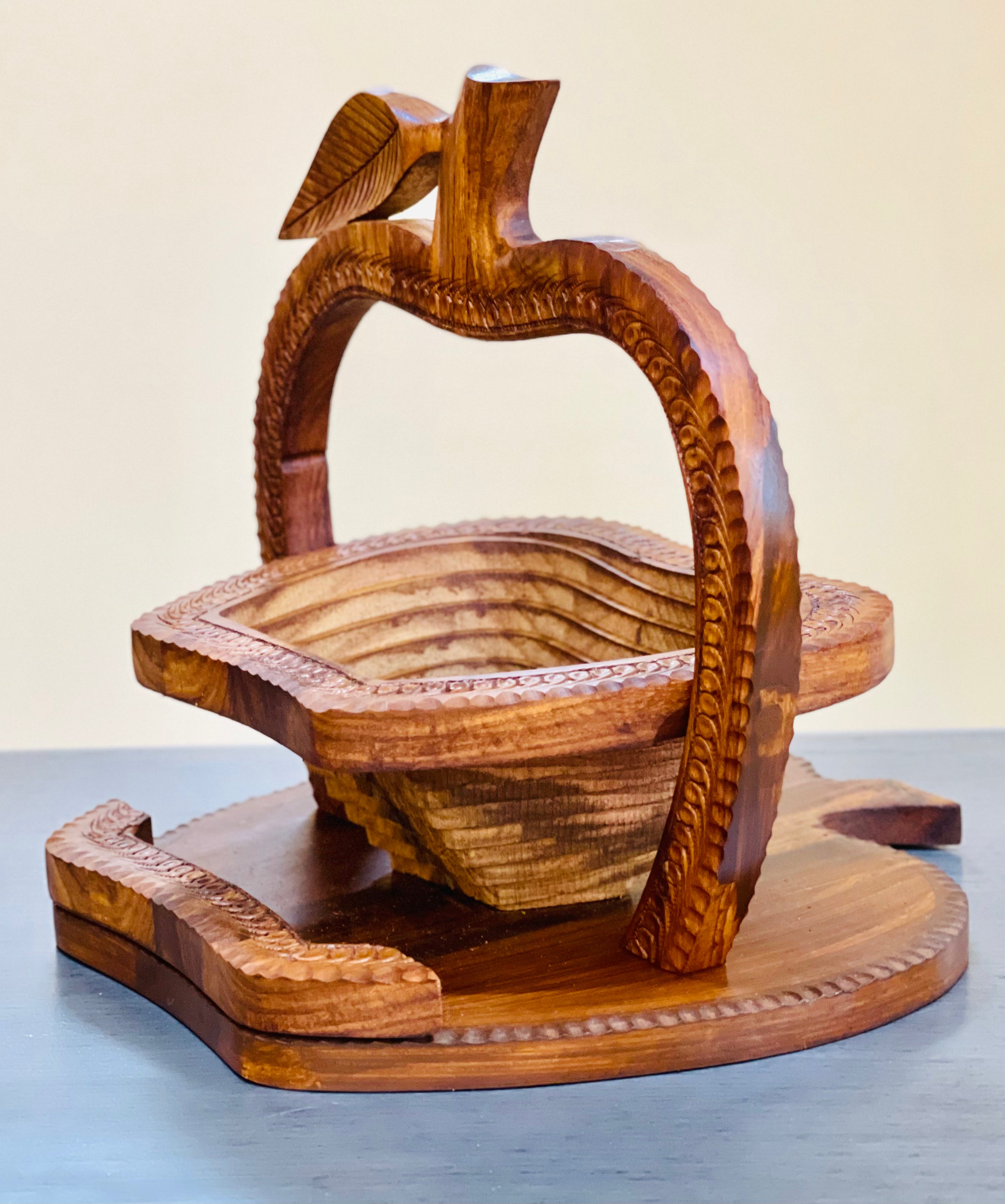 Handmade 8”, wooden, collapsible Leaf shaped basket with handle. / fruit basket / Bread bowl / Hot plate / Trivet to basket /