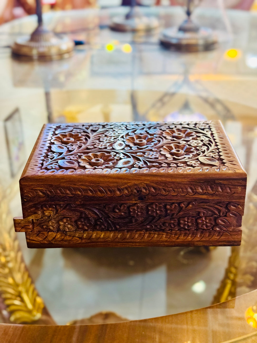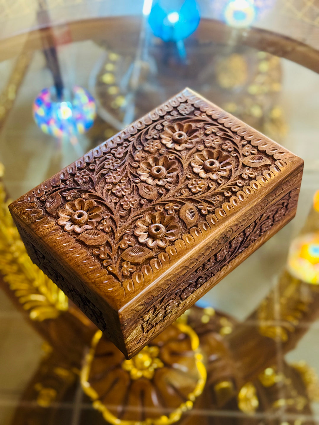 Discover our beautiful Handmade Wooden Jewelry Box, crafted using authentic Rosewood from the Himalayas. Perfect for protecting your jewelry and adding elegance to your room. A special piece for your treasured memories.