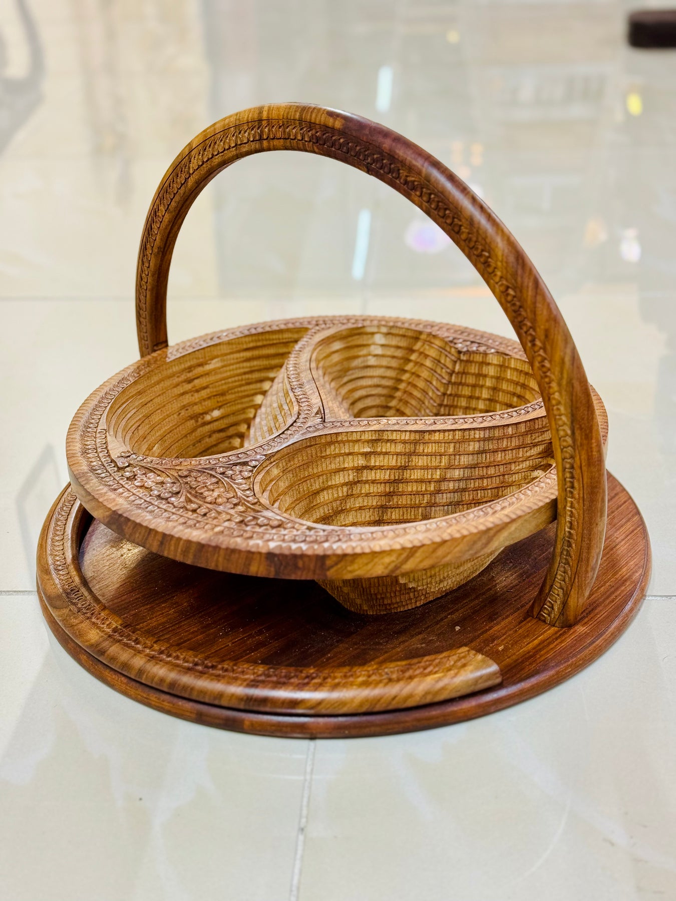 Looking for something beautiful and useful? This handmade wooden basket is both. It starts as a flat piece—super easy to store—and folds open into a stunning fruit bowl or bread basket. The design is completely carved by hand, giving it a unique look that stands out on any table. You can use it for hosting, gifting, or just adding something special to your kitchen.