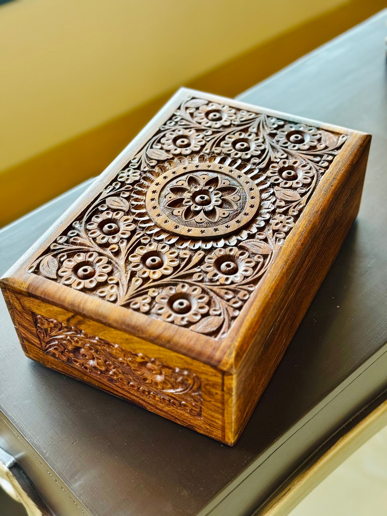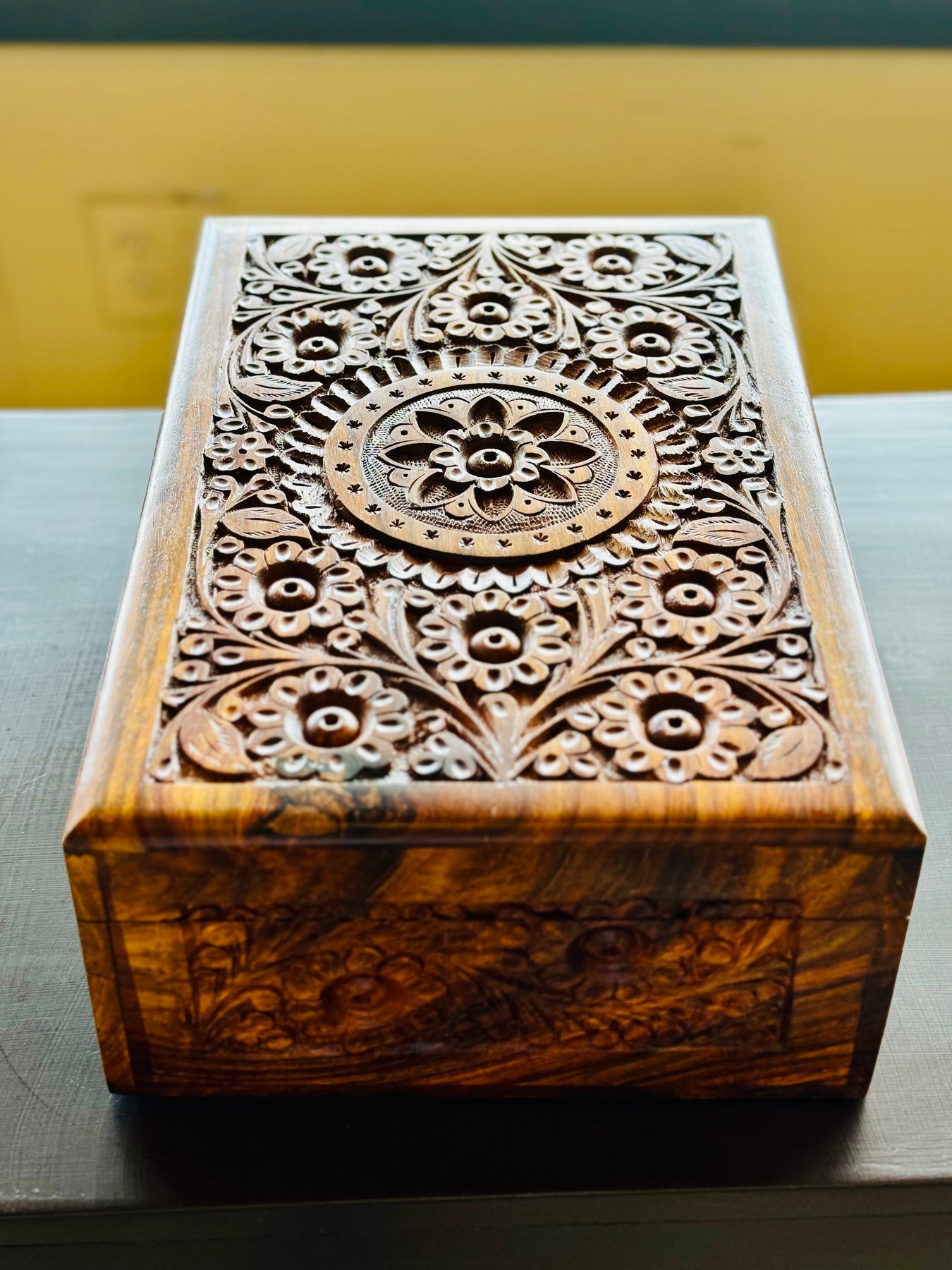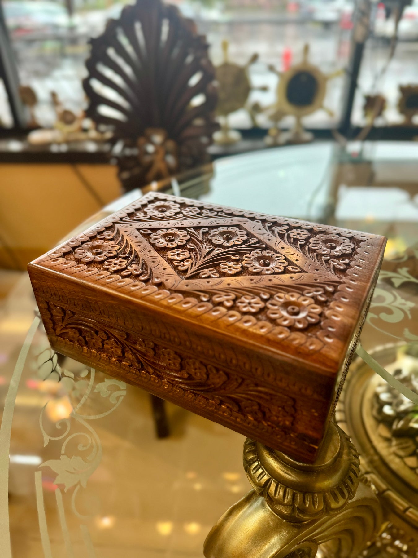 Each Jewelry Box and Basket is hand-crafted in the Himalayas using the finest Rosewood.